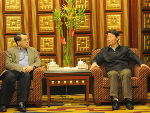 3月25日,四川省委副書記李崇禧(右)在成都錦江賓館會(huì)見了來川訪問的亞洲最大果蔬汁飲料生產(chǎn)商臺(tái)灣佳美集團(tuán)董事長游昭明一行。圖片來源:四川省臺(tái)辦