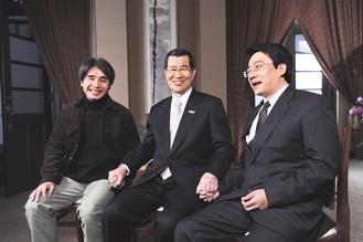 蕭萬長(中)在與“中研院研究員”廖福特(右)、政大法律系副教授廖元豪(左)對話,探討大陸配偶議題。圖片來源:聯(lián)合報(bào)