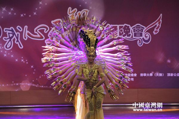 第六屆中華文化快車——北京心靈呼喚藝術團7日晚間在臺灣中國文化大學舉辦歌舞晚會,圖為演員們表演敦煌舞蹈《千手觀音》。(中國臺灣網記者 普燕)  第六屆中華文化快車——北京心靈呼喚藝術團7日晚間在臺灣中國文化大學舉辦歌舞晚會。