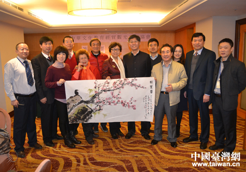 中國臺灣網2月13日臺北消息 2月12日,應中華海峽兩岸企業交流協會邀請,來臺出席第三屆高雄燈會節暨北京特色周活動的大陸書畫名家與臺灣知名書畫家在臺北舉行交流筆會。臺灣中華文耀文教經貿交流協會理事長、臺灣畫家呂玉環主持筆會,程茂全、張和平、王興家、慕云五等與臺灣畫院副院長盧錫炯合作獻藝,共敘友情賀新春。(中國臺灣網北京通訊員 郭寧 王正智)