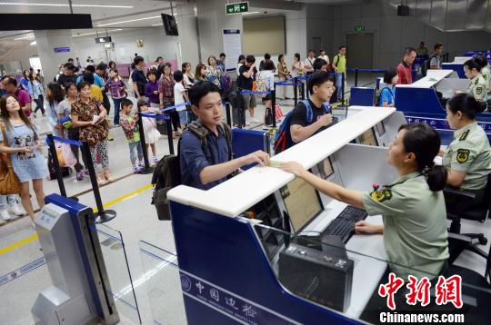 記者看到,通關(guān)時,陳炳仁與其他二十多位臺胞把持有的臺胞證交予邊檢站民警,經(jīng)過人像對照和核查證件有效后即可通關(guān),平均每人通關(guān)時間僅為30秒左右。