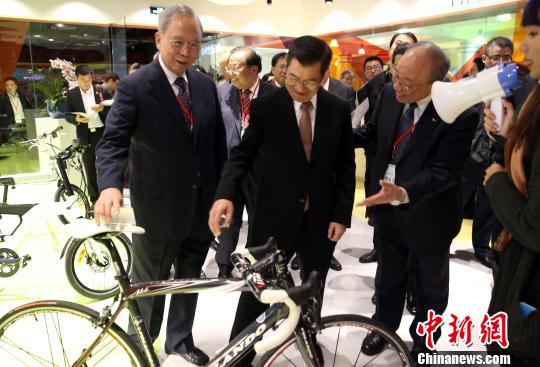 臺灣商品中心1日在上海自貿試驗區正式揭牌營運,兩岸企業家峰會大陸方理事長曾培炎、臺灣方理事長蕭萬長等嘉賓參觀中心!∨怂鞣啤z