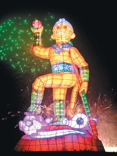 今年燈會(huì)主燈以家喻戶曉的齊天大圣孫悟空為主題,用全彩LED光源搭配4D折射模式,營造嶄新的科技風(fēng)貌,高達(dá)26米也是歷年之冠。市府表示,昨晚六個(gè)燈區(qū)逾130萬人次進(jìn)出,預(yù)估整個(gè)展期將吸引1400萬人次觀賞。