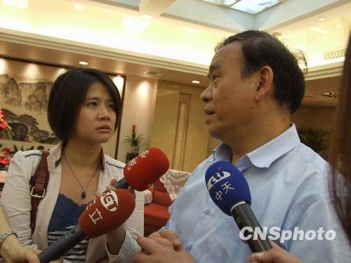 資料圖:5月24日下午,浙江省省長呂祖善會見由13家媒體組成的臺灣媒體聯合采訪團。圖為會見后臺灣媒體仍然不愿錯過機會,繼續追問。 中新社發 李飛云 攝