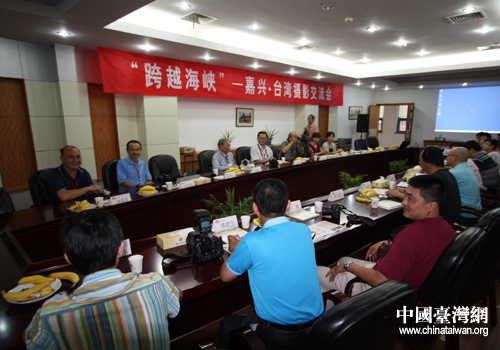“跨越海峽”—嘉興·臺灣攝影交流會現場。(圖片來源:嘉興市臺辦)