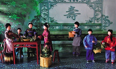 琦君紀念館里收藏的我市藝術(shù)家綢塑作品,生動再現(xiàn)了琦君筆下的溫州端午風俗。季天淵攝