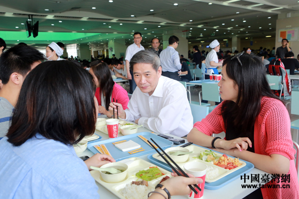 張志軍與臺灣學生一同排隊打飯(中國臺灣網 于斯文 攝)