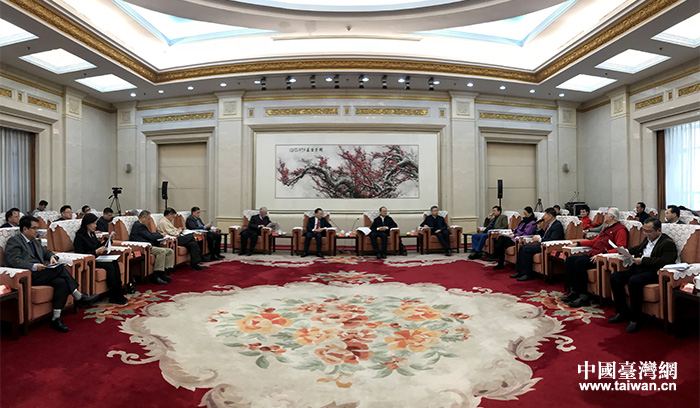 中國和平統一促進會8日下午在京舉辦理事座談會,認真學習貫徹習近平總書記在《告臺灣同胞書》發表40周年紀念會上的重要講話精神。(中國臺灣網 普燕 攝)