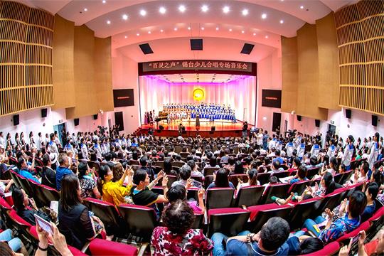 “百靈之聲”錫臺少兒合唱專場音樂會在無錫市新落成的少年宮青少年音樂廳舉行(無錫臺辦供圖)