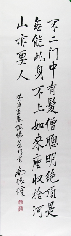 南師的青年時代,日本侵略者的鐵蹄正踐踏中國。國破山河碎,神州大地已難以安放一張讀書的課桌!捌咂呤伦儭焙,南師毅然入川,考入中央陸軍軍官學校,并任教官。然而,仿佛天注定的文化使命在召喚,26歲那年,南師辭去教官職務,入峨眉山大坪寺閉關讀大藏經。在當時,讀大藏經是可遇而不可求的,要讀此經還必須出家。南師一生立愿,一不做官、二不出家。但是為了讀大藏經接續中國文化,出了一次家。三年后讀通出關,決然返俗。他以詩明志,“不二門中有發僧,聰明絕頂是無能。此身不上如來座,收拾河山亦要人!笔帐昂由揭嘁,青年南師要收拾的,不是那被侵略者踐踏的支離破碎的山川大地,而是要收拾在傳承中被歷代統治者篡改閹割,導致中華大地積貧積弱被侵略被污辱的中華文化,恢復中華文化這個曾經燦爛無比的山川花園。