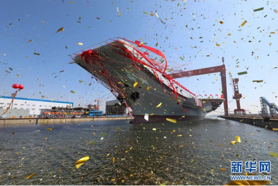 2017年4月26日,我國第二艘航空母艦下水儀式在中國船舶重工集團(tuán)公司大連造船廠舉行。圖為航空母艦下水儀式現(xiàn)場。