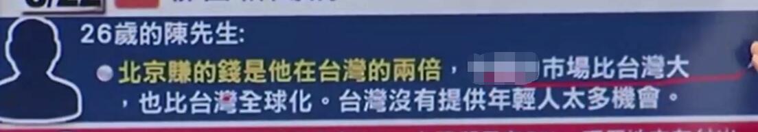 與此同時,也有不少臺灣媒體對人才流失痛心疾首,更在分析“臺灣青年人才為何紛紛赴大陸發展”時舉例表示,不少年輕人都認為在大陸不管是環境就業還是薪資待遇,都比臺灣要好太多。