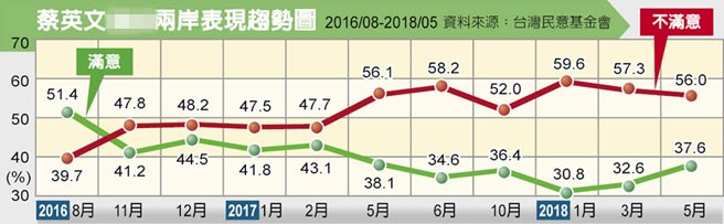 蔡英文兩岸表現(xiàn)趨勢(shì)圖。(圖片來(lái)源:臺(tái)灣《中國(guó)時(shí)報(bào)》)