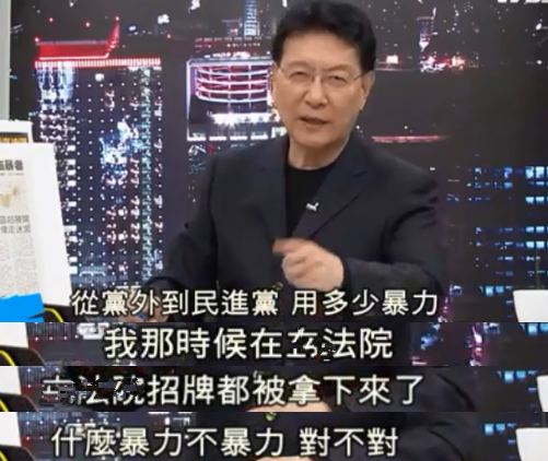 臺灣媒體人在節目中分享自己的從政經歷,當年民進黨鬧起來的時候,“立法院”的招牌都被摘下來了,還有臉批“暴力”?