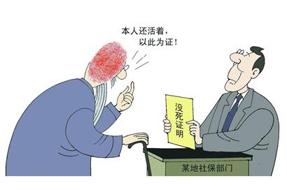 近日,網友曝山東菏澤市牡丹區規定,退休老人要花5元錢買“死沒死證明”,并親自到場證明沒死,才能領取退休金。當地相關部門回應,該證明不是“死沒死證明”,而是指紋驗證表;至于是否賣5元,工作人員稱“好像是這樣”。(3月22日《南方都市報》)