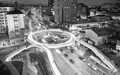 熱舒夫市市長塔德烏什不僅在熱舒夫市享有威望,在波蘭全國都有很高的知名度。他目前已經連任三屆市長。他在辦公室接受本報記者采訪時,一開始就指著墻壁上懸掛著的大幅人行過街天橋的照片,問記者是不是認識。看到記者有些迷茫的眼神,他笑著說,這是熱舒夫市內的“中國天橋”。他接著解釋說,在中國駐波蘭使館的幫助下,熱舒夫同中國廣西的防城港市去年結為友好城市時,他第一次去了中國。在中國訪問時看到的一切令他震驚不已,特別是上海的城市建設和防城港市的園林綠化尤其令他贊嘆。回國后,他很快就安排市政建設專家去中國考察,然后參照上海鬧市的空中過街天橋,在熱舒夫市中心建起了這座天橋,因為建筑風格獨特,被市民們親切地稱為“中國天橋”,現在已經成為熱舒夫市的一道著名景觀。