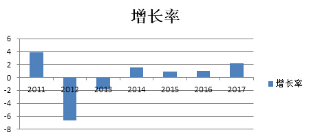 圖二:伊朗2011-2017年GDP年增長率(含預測)