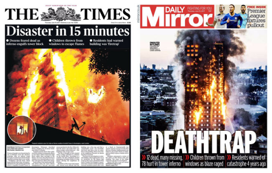 火災發生后,英國媒體對釀成慘劇的原因進行了鋪天蓋地式的報道。《泰晤士報》《每日鏡報》分別用“15分鐘的災難”、“死亡陷阱”形容這次火災。