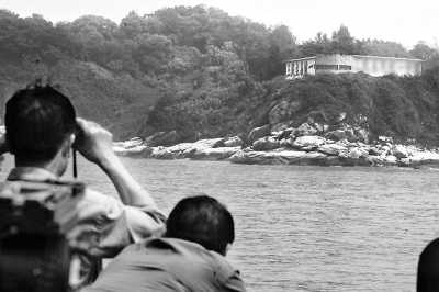 大陸游客從船上遠(yuǎn)眺“心戰(zhàn)墻”。(圖片來源:百度圖片)