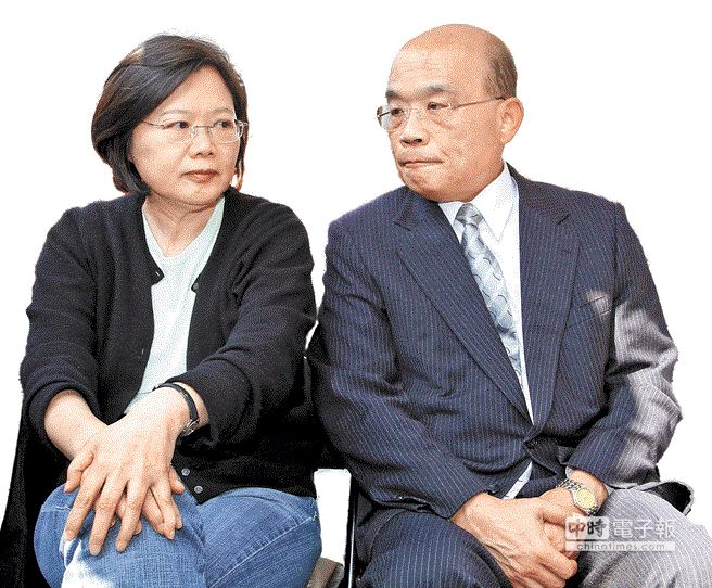 圖 民進黨主席蘇貞昌(右)與前黨主席蔡英文(左)是否再度披掛上陣選臺北市長,基層焦慮感浮現。圖片來源:臺灣中時電子報。(資料照片 姚志平攝)