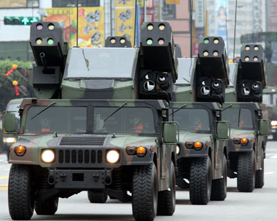陳水扁上臺以來,臺軍一直在大量生產、采購各種武器裝備,其中就包括提升機動戰力的裝甲車。2006年,臺軍曾編列總額約200億元新臺幣的巨額預算,采購1200輛新型 “中型戰術輪車”并陸續服役。加上臺軍之前就裝備的1900多輛重型和輕型坦克、1700輛裝甲車以及即將投產的1700輛“云豹”裝甲戰車,臺軍目前在役的各種戰車數量已經超過6000輛。臺灣《軍事家》雜志評價說,在如此狹小的島嶼里,這種密度堪稱世界之最,“要知道即使像英軍、法軍這樣的軍隊,也就保持數千輛裝甲車”。