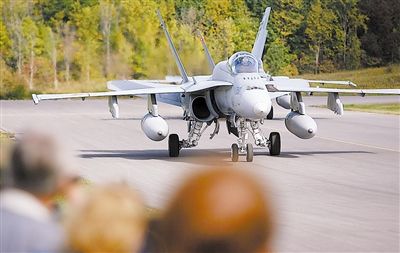 9月18日,在加拿大首都地區的加蒂諾-渥太華行政機場,觀眾觀看一架加拿大F-18大黃蜂戰斗機降落。當日,加拿大舉行老式飛機飛行表演,以此向第一次和第二次世界大戰中的三位加拿大維多莉亞十字勛章獲得者表達敬意。新華社發