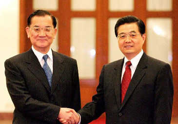 2005年4月29日下午3時,中共中央總書記胡錦濤與中國國民黨主席連戰那一次歷史性的握手。(來源:新華網)