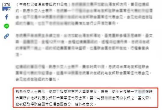 蔡英文為選舉撐門面,遇到沾有“美國”、“聯合國”、“國際社會”等字眼的機構、組織和會議,都要拼命蹭一蹭。這一次,金雖然貼在了臉上,不過立馬臉就被打得生疼。截至發稿時,臺灣“中央社”已做出修改,在“常任理事國”前,填上了“非”字,不知道這樣的操作,是蔡英文當局授意為之,還是“中央社”小編筆誤。