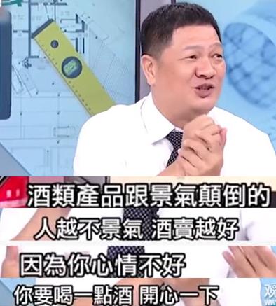 節(jié)目嘉賓表示,“越不景氣,酒賣(mài)得越好,因?yàn)槟阈那椴缓,要喝一點(diǎn)酒開(kāi)心一下”。