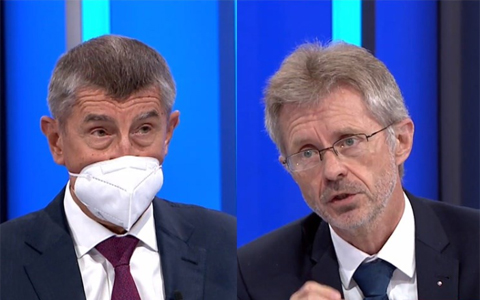 捷克總理巴比什與參議長維特齊在電視節目上辯論。(圖片來源:網絡)