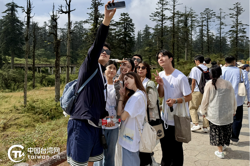 兩岸青年學(xué)子在眉山之行中建立起深厚友誼,于瓦屋山登頂后合影留念。(中國臺(tái)灣網(wǎng)記者 郁誠 攝)