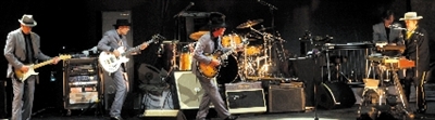 讓大家普遍覺得更了不起的是他的口琴。這位70歲的老人數次用口琴震撼全場。在演唱spirit on the water時我覺得樂隊和迪倫的表演脫節了,但只要老迪倫的嘴唇濡濕了他那富有魔力的口琴,觀眾的情緒立刻被點燃,正如歌中所唱的:我們可以盡興。他們是主宰,就站在那里,不遠不近,迎接我們的熱情,不離不棄。(蘇巴鴻)