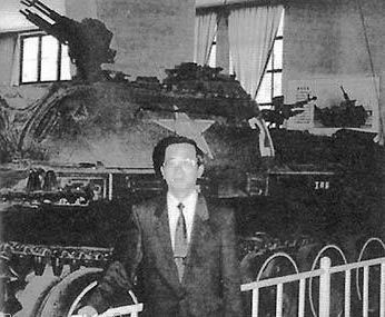 資料圖:陳水扁在北京軍博印有“八一”字樣的解放軍坦克前留影。