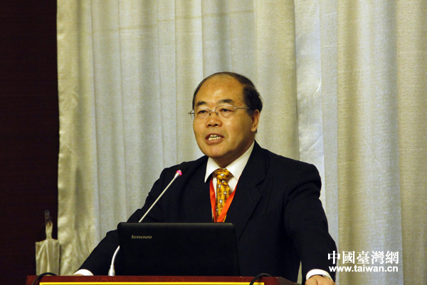 全國臺灣研究會執(zhí)行副會長兼秘書長周志懷為第七屆兩岸青年學者論壇致開幕辭。(中國臺灣網記者 李杰 攝)