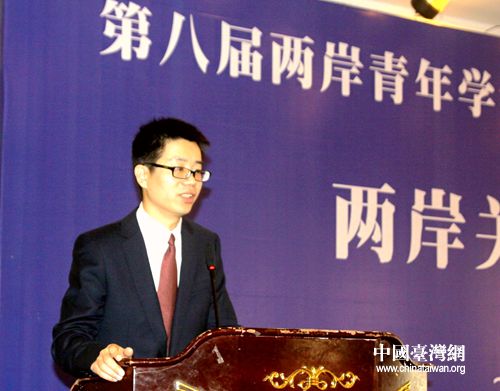 第八屆兩岸青年學者論壇今日在廣西南寧召開,河南師范大學博士后王鶴亭在論壇上發言。(中國臺灣網 李杰 攝)
