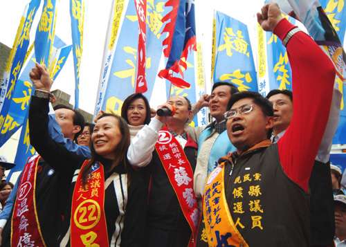 選舉造勢現場,一定有美食的味道。連勝文造勢大會現場準備的是香味四溢的炒米粉、姜母鴨、豬血湯。不到晚上6時,排隊人流已經繞了兩彎。發送美食的志工媽媽說,發送超過2000碗。享用著美食,臺上還有歌舞表演,所唱的歌曲同樣“順應”地方民情。萬華地區多為閩南人,演唱歌曲自然也以閩南語歌曲為主。鄉親們邊吃邊喝邊看,候選人則在人群中穿梭,跟捧場的人們熱情握手、爭取選票。最后,候選人上臺宣講政見,帶領臺下民眾高喊“凍蒜”(當選),活動到達高潮也就此落幕。