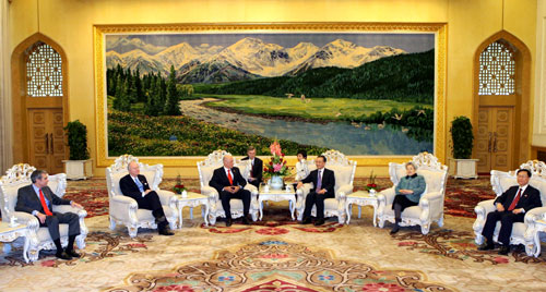 溫家寶指出,中美經(jīng)貿(mào)合作在快速發(fā)展過程中,出現(xiàn)了一些分歧和摩擦,但這與兩國經(jīng)貿(mào)合作給雙方帶來的巨大利益相比是支流。雙方應(yīng)著眼大局和長遠(yuǎn),堅(jiān)持通過對(duì)話和協(xié)商,以建設(shè)性的方式,按照經(jīng)濟(jì)規(guī)律妥善解決。