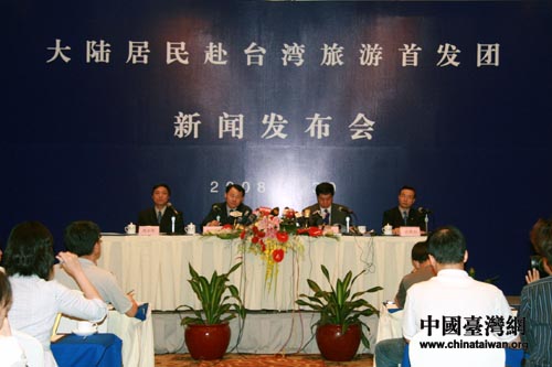 國家旅游局新聞發言人、海峽兩岸旅游交流協會秘書長祝善忠,國家旅游局質量規范與管理司司長、海峽兩岸旅游交流協會常務理事李任芷發布了大陸居民赴臺旅游首發團的有關情況。