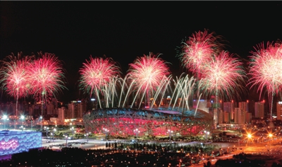 鳥巢內部工作人員介紹,雖然多次燃放煙花,但是“每次都很短暫,有點不過癮。我最喜歡像笑臉形狀的焰火,非常漂亮”。