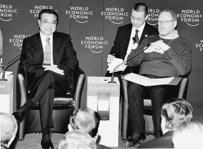 1月28日,國務院副總理李克強出席了與參加世界經濟論壇的知名企業家對話會,就應對氣候變化等全球性挑戰、中國擴大內需政策方向、保持經濟平穩較快發展等問題,與企業家們進行交流并回答提問。新華社記者 樊如鈞攝