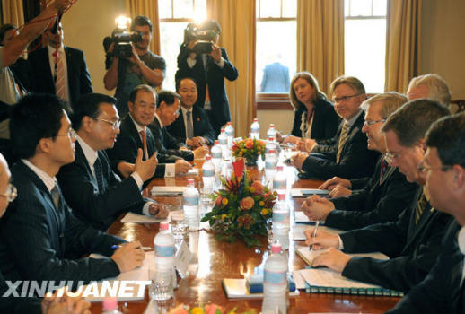 10月30日,中國(guó)國(guó)務(wù)院副總理李克強(qiáng)在澳大利亞首都堪培拉會(huì)見澳大利亞總理陸克文。新華社記者劉建生攝