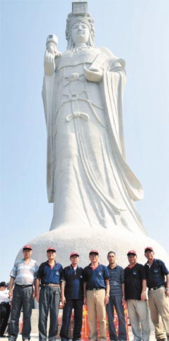縣府文化局專員吳曉云說(shuō),縣府大力爭(zhēng)取當(dāng)局支持興建媽祖巨神像,并邀請(qǐng)“立法院長(zhǎng)”王金平出任籌備會(huì)榮譽(yù)主委,今年6月動(dòng)土興建,10月初完成高達(dá)28.8公尺的巨像,全部以花崗巖打造,是全世界最高的媽祖巨石神像,日前舉行開(kāi)光儀式,25日于“媽祖升天祭”大典中正式揭幕。