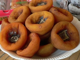 柿餅是以新鮮柿子經(jīng)過修蒂去皮之后,以及一連串繁復(fù)的加工過程所制作的食品,在制作過程中沒有加入任何防腐劑等,所以必需冷藏或冷凍,自冰箱中取出略為回溫,即可食用。另外有一種柿干,表層有柿霜,可以煮雞湯用。