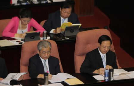 據臺媒報道,江宜樺比王金平大約晚50分鐘進入議場,在兩個多小時中,兩人目標并無對視,可謂相敬如“冰”。(圖片取自網絡)