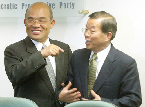 謝長廷:柯文哲是否入黨,要考慮綠營是不是能贏。(左為蘇貞昌,右為謝長廷,網絡圖)