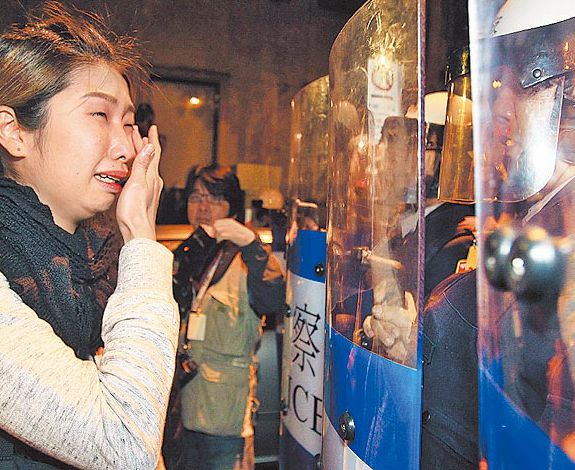 防暴警察驅離下,女學生不禁落淚。來自臺媒