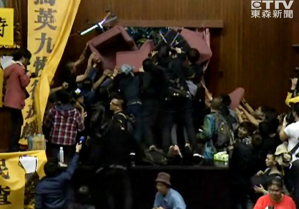 學(xué)生阻擋警方攻堅(jiān)。(臺(tái)媒圖)