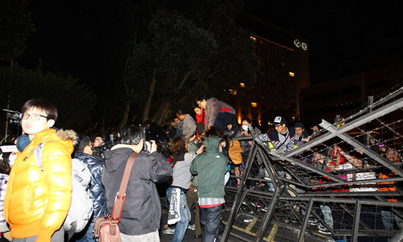 3月24日凌晨,反服貿人群攻占“行政院”。(臺媒圖)
