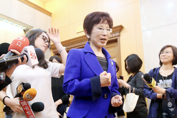 圖:國(guó)民黨中央提名審核委員會(huì)25日確認(rèn)“總統(tǒng)”初選連署狀況,只有“立法院副院長(zhǎng)洪秀柱”(中)一人通過(guò)連署門檻/中央社