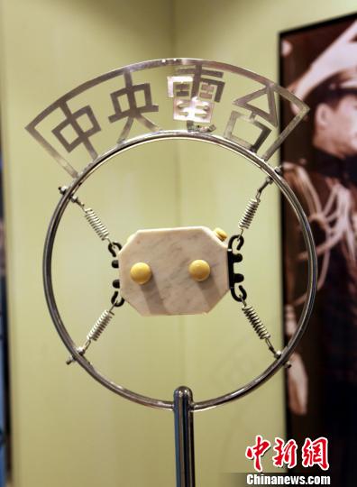臺(tái)灣“中央廣播電臺(tái)”文史館展出當(dāng)年蔣介石在南京宣布對(duì)日抗戰(zhàn)取得全面勝利的麥克風(fēng)。據(jù)介紹,該麥克風(fēng)雖系仿真件,但麥克風(fēng)的核心部分則為原件。